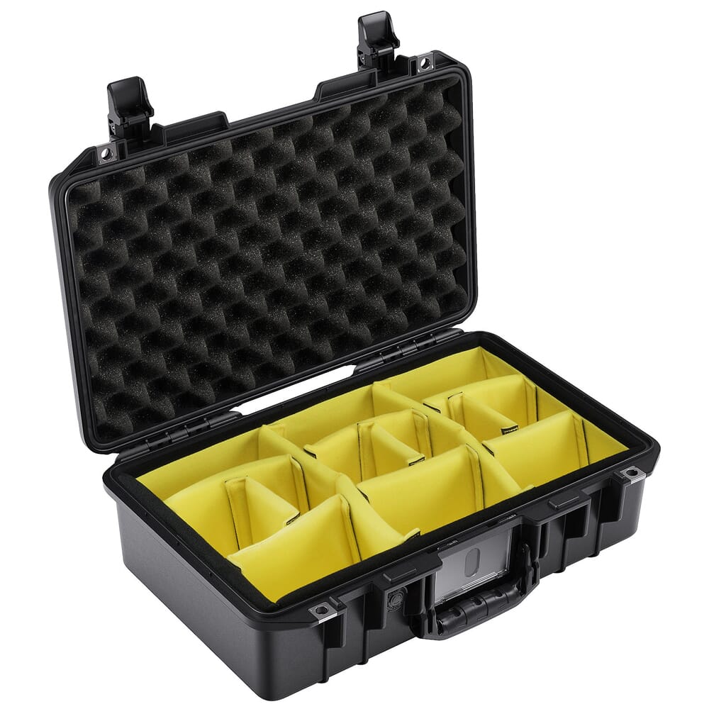 Protect your gear on the go with Pelican�s 1485 Air Case. Available with or without foam inserts, the 1485 Air Case is up to 40% lighter than hard cases of a similar class. Like all of Pelican�s Air Cases, the 1485 remarkably durable despite its lightweight thanks to its molded HPX resin, a proprietary formula that rebounds without breaking, as well as honeycomb structural elements that are stronger than solid polymer. To ensure they could stand up to the rigors of heavy field use, the Air Cases are subjected to a series of tests: A drop test from 3 feet onto solid concrete, a 20-minute submersion in 3 feet of water, and a test involving a 28-pound steel dart dropped on all sides and corners of the case � the Air Case passed all of these tests with flying colors. In addition, the Air Case is equipped with press and pull latches, rubber overmolded handles, an automatic purge valve to balance air pressure, and a removable polycarbonate card holder.