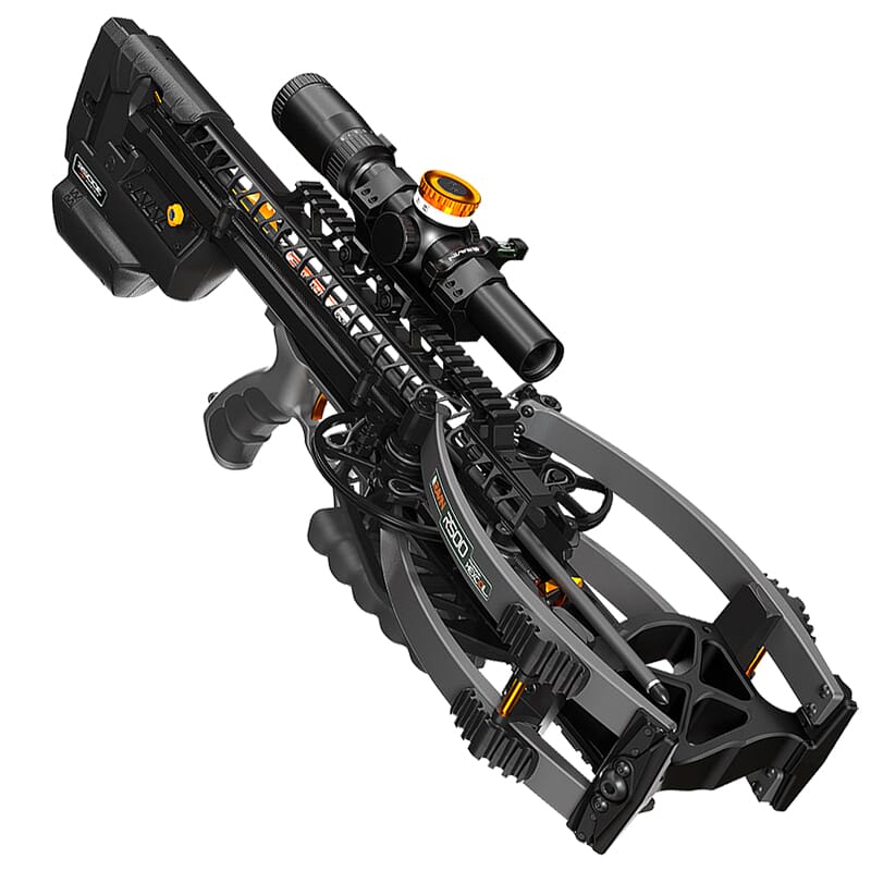 Ravin’s R500E Slate Gray Crossbow Sniper Package was designed for discerning shooters who demand extreme accuracy. This advanced crossbow is equipped with Ravin’s Electric Drive System which can cock and un-cock mechanism with the press of a button. This automatic cocking device attaches directly to the stock and consists of a motor and 12-volt rechargeable battery. Alternatively, the R500E can be manually cocked with the included R500 draw handle. The Sniper Package also features the Adjustable Turret Scope which allows the user to fine-tune their yardage by turning the elevation turret, and a Ravin Scope Level that improves accuracy by indicating whether or not the crossbow is perfectly level. In addition, the R500E is designed with Ravin’s proprietary HexCoil Cam System, which can launch a 400 grain arrow at 500 feet per second with an axle-to-axle width of 3.6 inches when cocked and 7.6 inches un-cocked. The crossbow also features the VersaDrive Cocking system, which is composed of a dual-screw drive that moves the Trac Trigger Firing System back and forth. The VersaDrive’s integrated clutch removes any chance of over-cocking and enables the cocking/de-cocking process to be stopped at any time.