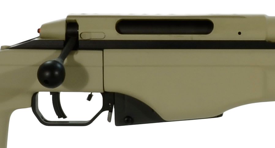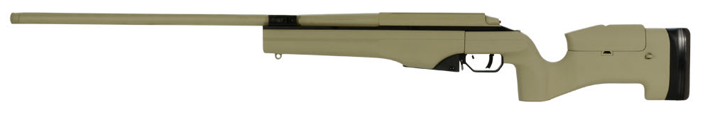 The solid vault-like action is cold hammer-forged from special steel alloy. Integral 17 mm axial scope mounting rails with integral recoil stop-slots on the top of the receiver. The sturdy bolt with three locking lugs feeds rounds unfailingly from the centerline of a detachable staggered 2-row magazine. Reliable feed with various ammunition types. Bolt lift is only 60° for fast bolt throw. This rifle is new and was custom coated with Cerakote. Cerakote improves performance and reliability over conventional finishes.