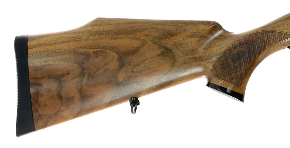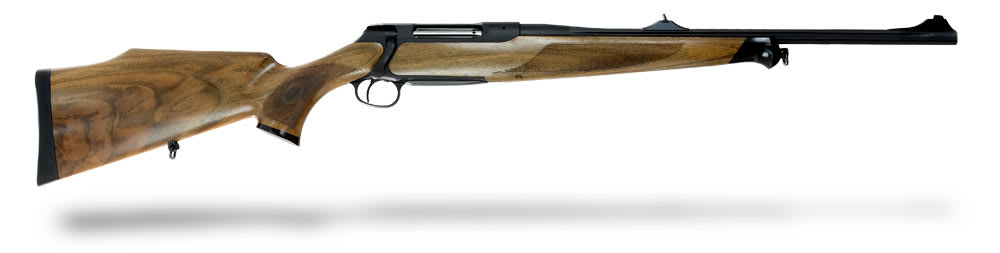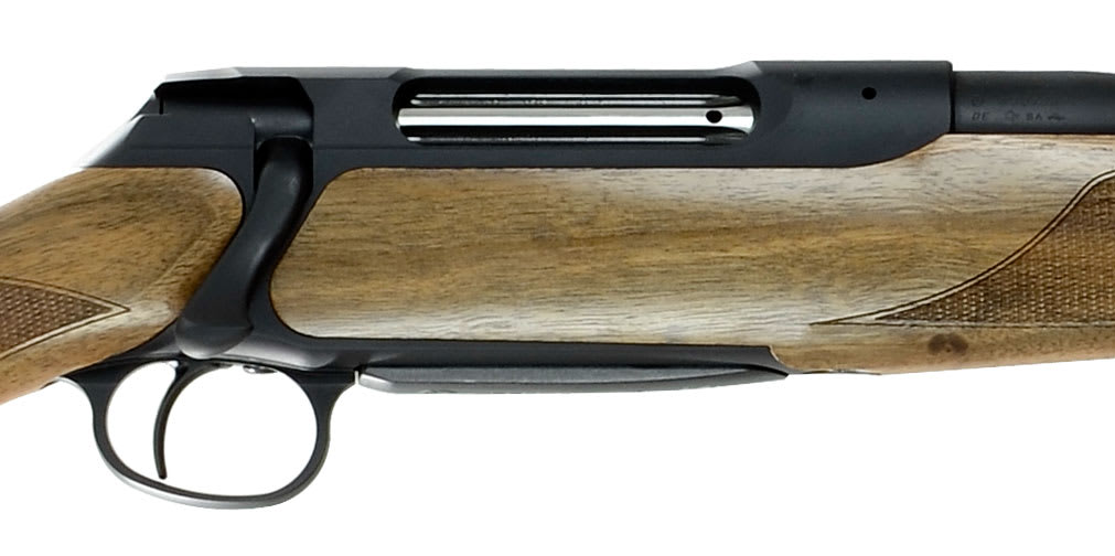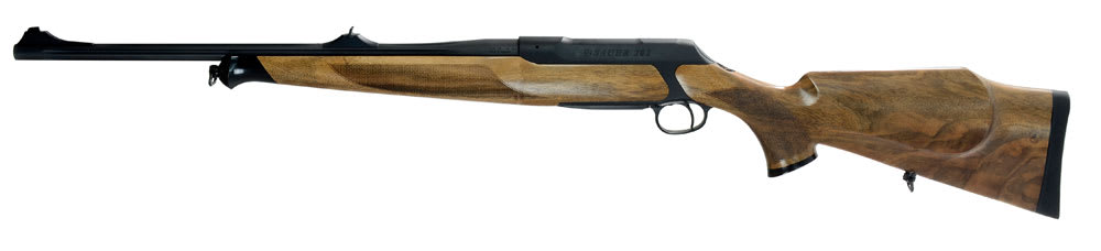 This Sauer 202 Highland .243 Winchester is short and effective with a light metal receiver, llaflon-coated steel parts, fluted barrel and bolt, swept-back bolt handle, category 3 wood Monte-Carlo stock with cheek piece, and luxury wood fore-end and pistol grip cap with a total length of 104 cm or 71.5cm after removal of the buttstock.