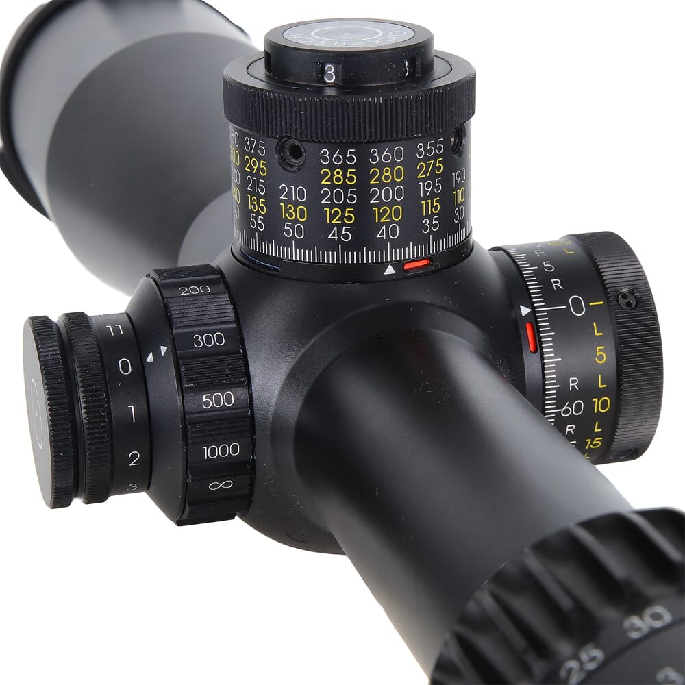 The LPI feature eliminates the need for a rearward-mounted illumination control, providing more mounting options and enhancing compatibility with left-handed rifles. The 11-setting illumination knob has an off position between each setting, optimizing battery life and ease of use. The parallax knob ranges from 20 meters to infinity, both distinguishable by size and rippling, with easy-to-read engravings for adjustments even in shooting positions or while wearing gloves.