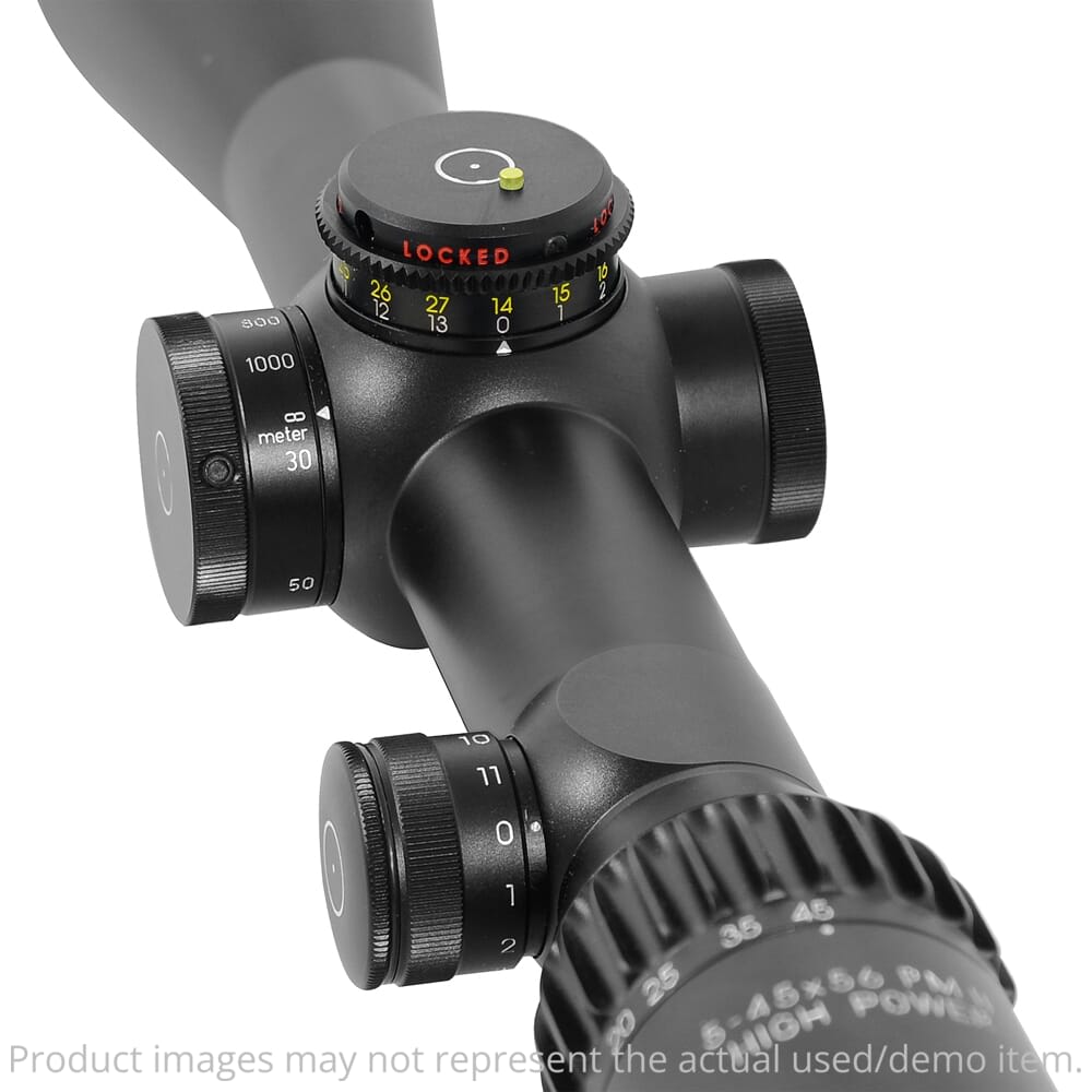 Schmidt Bender USED 5-45x56mm PM II High Power LP LRR-MIL 1cm cw DT27 MTC LT / ST ZC CT Riflescope 666-911-41C-G9-E9 - Ring Marks - Mark On Turret w/ Box UA5445