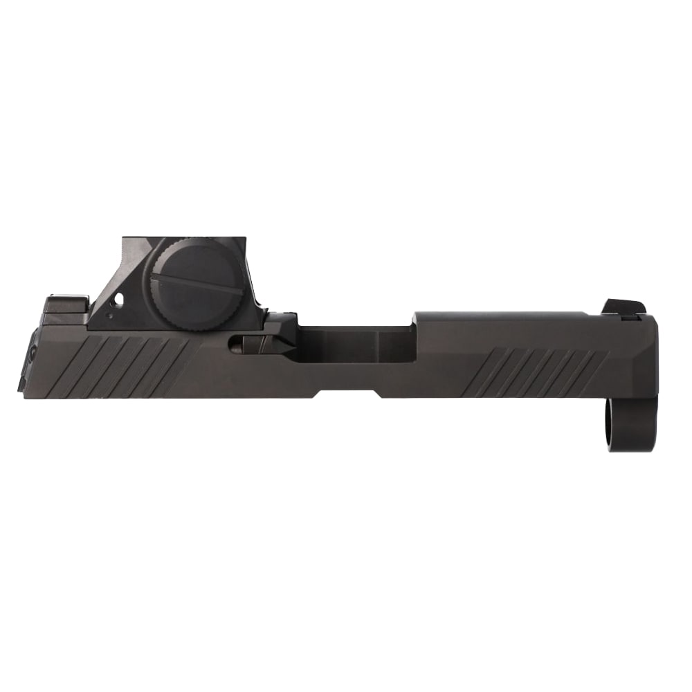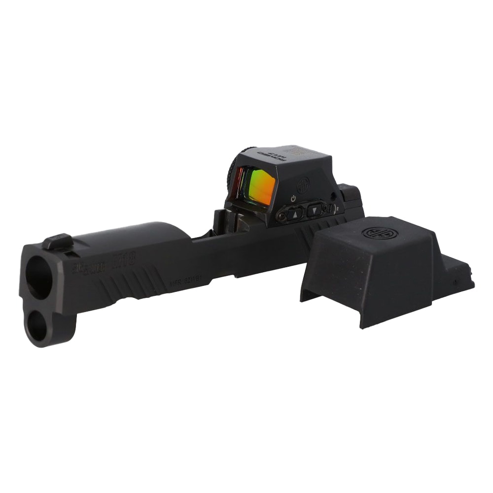 The SIG Sauer P320‑M18 3.9″ Slide Assembly is a factory‑built, optics‑ready M18 slide finished in black and delivered with SIG’s ROMEO‑M17 reflex sight and SIGLITE iron sights already installed. Built from stainless steel and listed at ≈12.4 oz, this 3.9″ 9mm slide assembly includes a loaded‑chamber indicator and the military‑style SIG‑LOC optic footprint for drop‑in compatibility with M17/M18‑pattern optics. Sold as a slide assembly (barrel and recoil components typically not included), it’s an ideal factory option for converting a compatible P320 fire control unit into an M18‑style pistol with a pre‑installed ROMEO‑M17 for out‑of‑the‑box sighting performance.