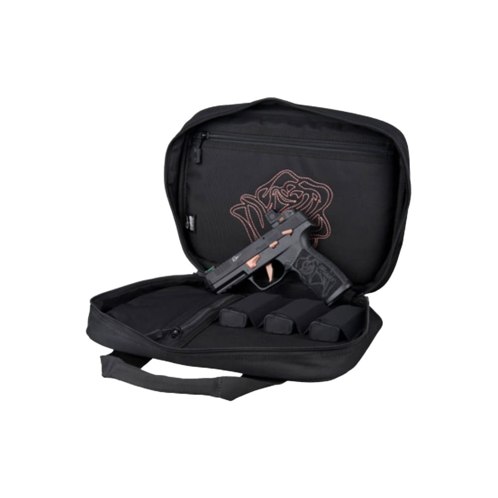 The Sig Sauer P322 Rose is a feature-packed, limited-edition .22 LR semi-automatic pistol delivering exceptional performance and a distinctive aesthetic in one complete ready-to-shoot package. The 4-inch barrel and crisp single-action-only trigger make this pistol a natural choice for target shooting and training, while the integrated Romeo-RS Compact red dot with fiber optic sight provides fast, intuitive target acquisition right out of the box. Three 10-round polymer magazines offer compliant capacity ideal for jurisdictions with magazine restrictions or for structured range training, and the included Savior bag provides convenient storage and transport for the complete package. Whether used for recreational plinking, competitive rimfire shooting, or as a cost-effective training platform, the P322 Rose delivers outstanding value and versatility in a uniquely distinctive package.