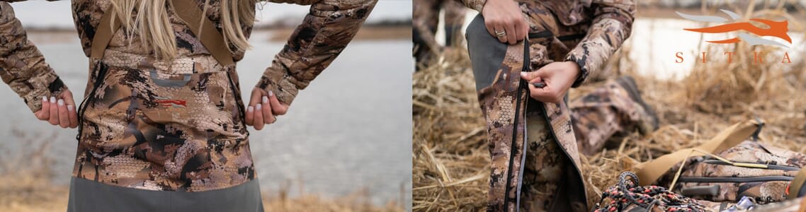 Sitka has released Women's Waterfowl Marsh products with all the rugged durability and specialized design of the Men's line. Keep warm and dry on your next waterfowl hunt with the Hudson Jacket, Bib, and Glove.