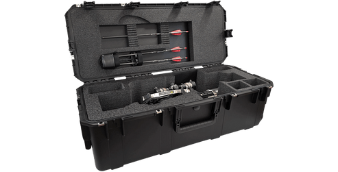 The SKB iSeries TenPoint TRX26 Crossbow Case is a rugged, military-grade hard case designed specifically to protect and transport TenPoint TRX 26 crossbows and accessories. Constructed from ultra-high-strength polypropylene copolymer resin, this injection-molded case delivers exceptional durability while maintaining a gasket-sealed, waterproof and dust-tight design that safeguards equipment from moisture, debris, and harsh environmental conditions. A precision-cut, high-density closed-cell foam interior securely holds the crossbow, quiver, and accessories to prevent movement and impact damage during transport. The case features SKB’s Trigger Latch® system, molded-in hinge construction, and padlock-ready hasps for added security, along with an automatic pressure equalization valve for reliable performance across changing elevations. Multiple cushioned grip handles, integrated wheels, and a retractable pull handle provide convenient transportation, making this case an excellent long-term storage and travel solution for serious crossbow hunters and shooters.