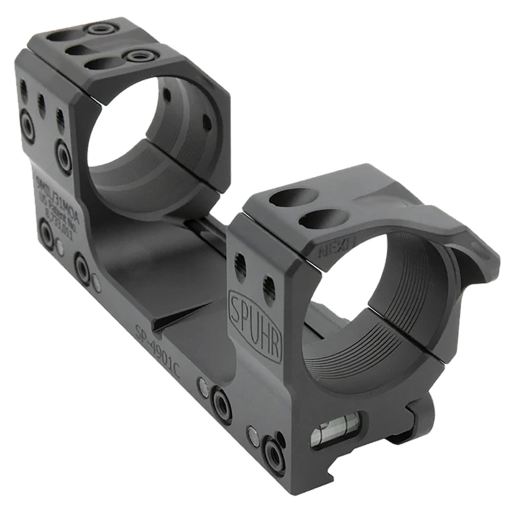 Designed for Picatinny rails, it features Spuhr’s ISMS interface for accessories like lasers, red dots, or angle indicators, and includes a leveling wedge and integrated bubble level for precise alignment. The Spuhr SP-4901CM is ideal for shooters seeking a robust, modular, and accurate mount with built-in elevation, though compatibility with two-piece rails should be checked.