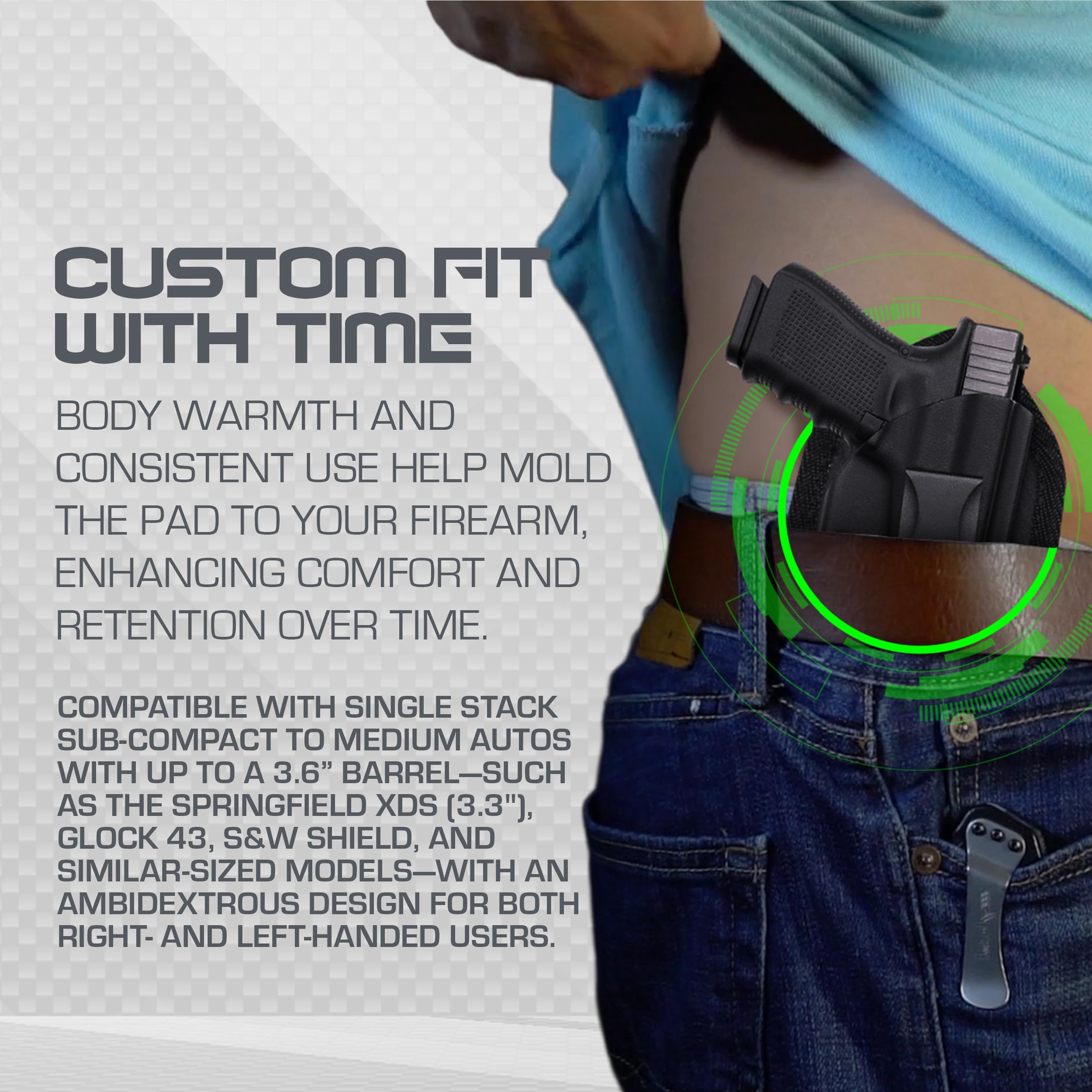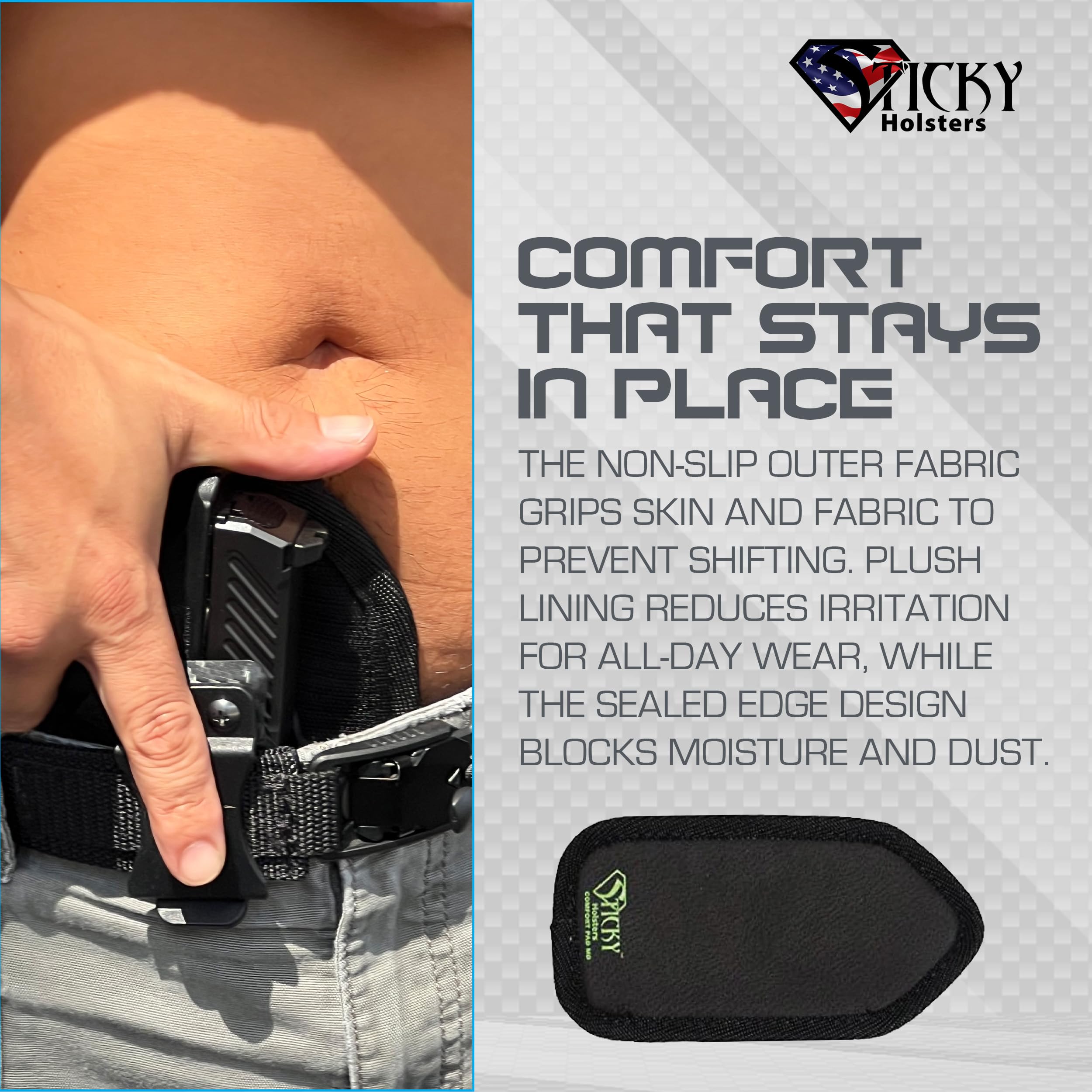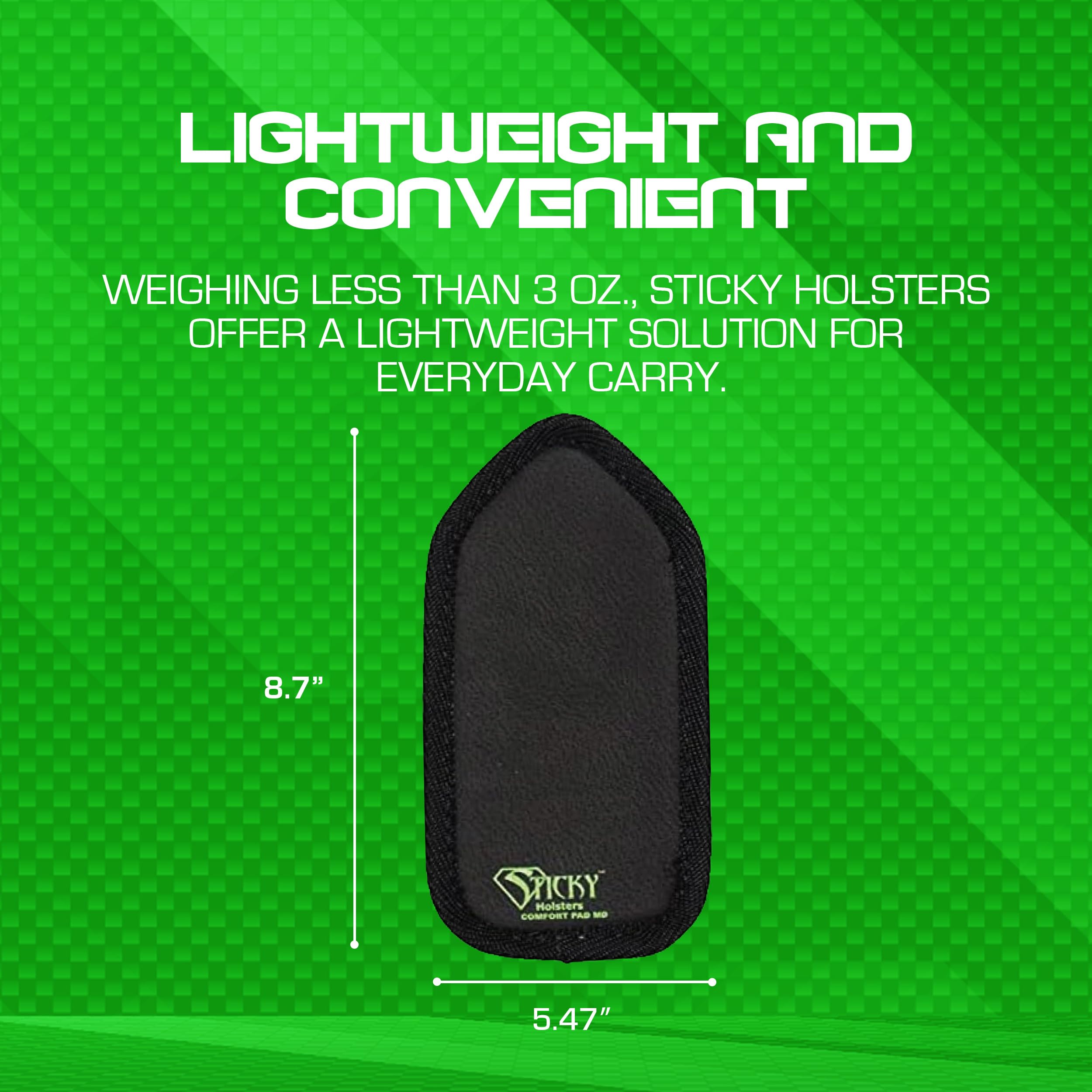 Enhance your holster experience with the Sticky Holsters Comfort Pad, the perfect aftermarket accessory for your hard plastic or Kydex holsters. Designed for those who prioritize comfort, this medium-sized pad ensures a perfect fit, providing optimal comfort during use. The Comfort Pad is easy to attach, thanks to its hook and loop design, offering a secure and reliable fit. Its durable construction ensures long-lasting performance, making it a valuable addition to your holster setup. Whether you're on the move or stationary, this pad is designed to improve holster comfort and usability, making it a must-have for holster enthusiasts.