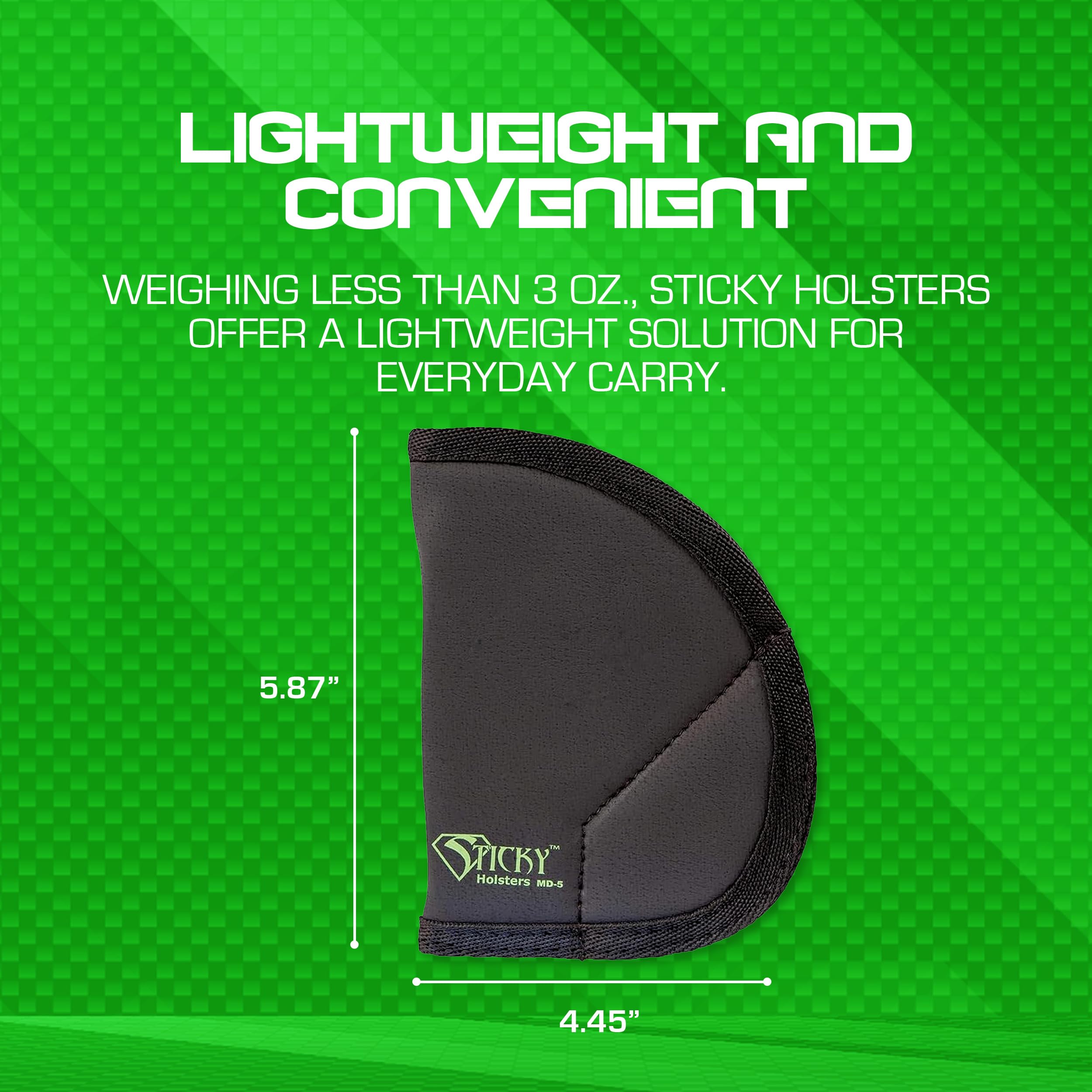 Introducing the Sticky Holsters Medium IWB/Pkt & Ambi Holster MD-4 - the ultimate solution for concealed carry enthusiasts seeking versatility and comfort. This holster is designed to accommodate a wide range of popular firearm models, including the Glock 43/X, SAI XD-S, Walther PPS, HK CC9, S&W Shield X, Taurus G2/3C, and Mossberg MC2sc/MC1. Its innovative sticky holster design ensures a secure and reliable retention, providing peace of mind for both right and left-handed users. The ambidextrous design and lightweight construction make it a perfect choice for all-day wear, whether you prefer to carry inside the waistband or in your pocket. Experience the perfect blend of comfort, security, and versatility with the Sticky Holsters MD-4, and carry with confidence wherever you go.