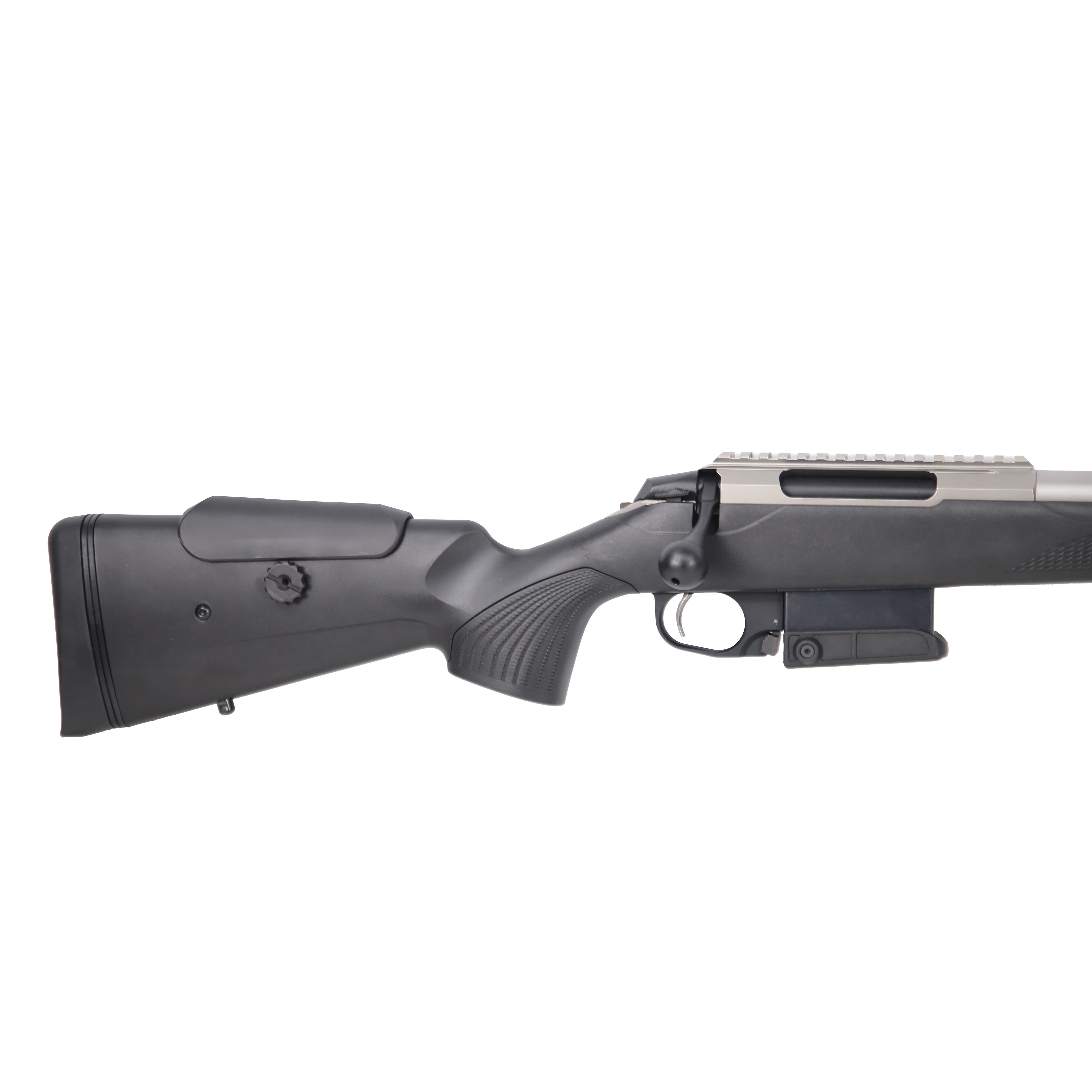 The Tikka T3X CTR is a precision rifle designed for shooters who demand accuracy and reliability. Chambered in .223 Remington, this rifle is perfect for precision shooting, whether you're at the range or in the field. Its durable stainless steel construction ensures enhanced longevity and performance, making it a reliable companion for years to come. The Tikka T3X CTR features a 20-inch barrel with a 1:8 twist rate, providing improved accuracy and stability with every shot. The adjustable cheek piece allows for a customized shooting experience, ensuring comfort and precision for every shooter. Additionally, the rifle includes a 10-round magazine, perfect for extended shooting sessions without the need for constant reloading. The Tikka T3X CTR is a perfect blend of performance, durability, and precision, making it a top choice for shooting enthusiasts.