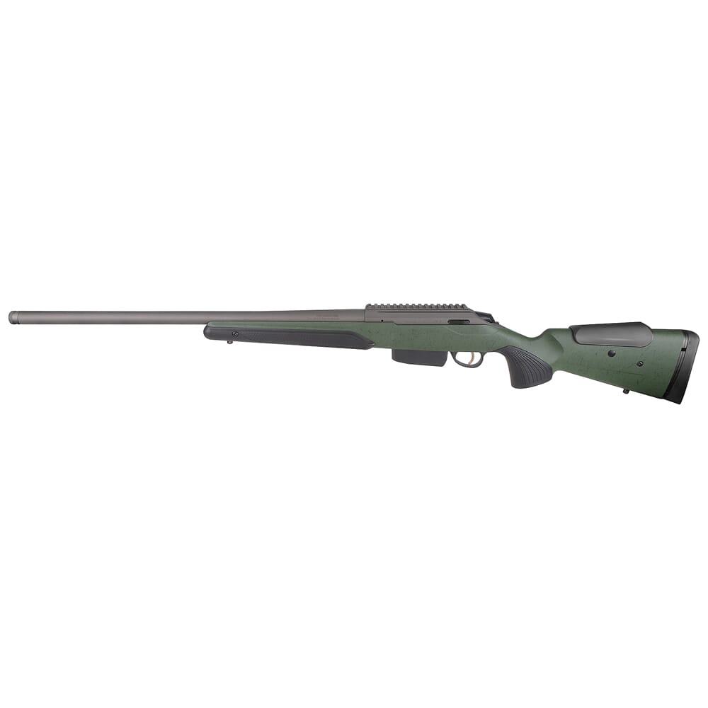 The Tikka T3x Super Varmint rifle takes the renowned T3x platform to a new level of ruggedness and reliability. The barreled action of this rifle is coated with Cerekote, providing exceptional durability and corrosion resistance. The rifle features a Picatinny rail that allows for the mounting of virtually any optic.