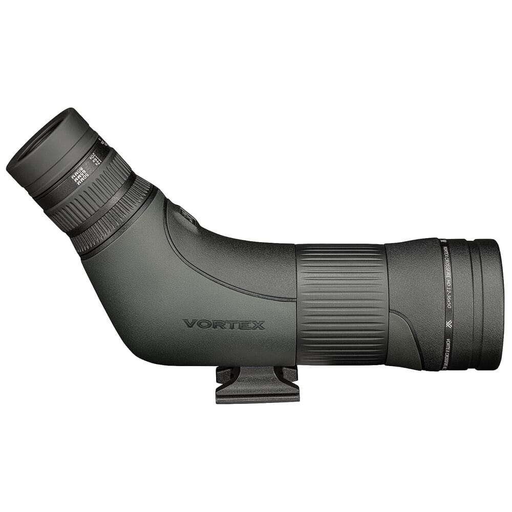 The Vortex Crossfire HD 12-36x50mm Angled Spotting Scope is a high-quality optical instrument designed for outdoor enthusiasts, bird watchers, hunters, and anyone needing a close-up view of distant objects. It features a magnification range of 12-36x and a 50mm objective lens, providing clear and detailed images over long distances. The angled design offers comfortable viewing, while the Vortex CF-50A scope comes with a neoprene case, lens covers, and a lens cloth for protection and maintenance. Overall, it's a versatile and durable spotting scope suitable for various outdoor activities.