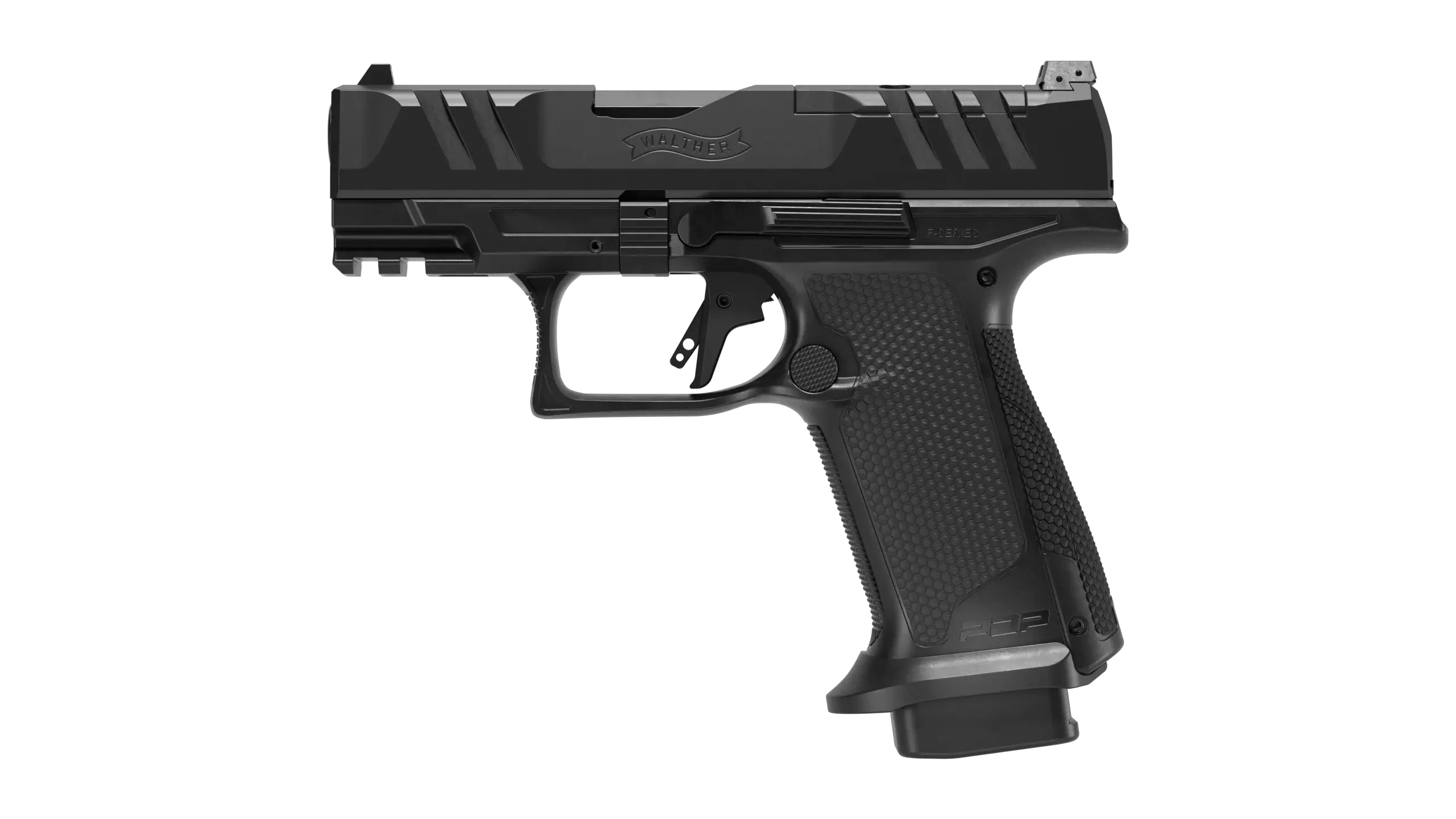 Walther’s PDP PRO F-Series was specifically designed for female shooters and individuals with smaller hands, and now offers multiple performance enhancing upgrades. The trigger has been upgraded to the flat-faced Dynamic Performance Trigger, offering a significant reduction in trigger weight, take up, and reset. Another improvement of the PDP PRO F-Series is an aluminum magwell to promote fast and intuitive reloads. Just like the original PDP F-Series, the PRO’s grip circumference has been reduced, and features an optimized grip angle to fit the contours of a female shooter’s hands – this translates to maximum control and faster follow up shots, as well as easier access to the F-Series magazine release. Other features of the PDP PRO F-Series includes a new slide system, resulting in a 20% reduction in slide racking force, and rounded Superterrain Cocking Serrations provides positive slide manipulations and comfortable concealed carry. Like all PDP models, the PDP PRO F-Series’ slide is optics ready, which has a deep optics cut to allow a red dot sight to be mounted lower in the slide for co-witnessing with the iron sights. In addition, the PDP PRO F-Series is highly modular in design. Magazines from the PDP Compact and PPQ M2 are compatible with the F-Series, and any size PDP slide can be used on an F-Series frame