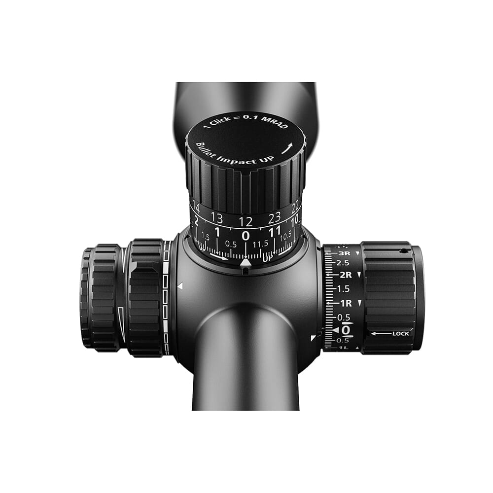 The Zeiss LRP S5 is a high performance, long-range riflescope that comes packed with exclusive features that riflescopes of a lesser quality fail to include. It comes equipped with Zeiss’s Fluoride lens elements and SCHOTT glass which greatly mitigates color dispersion and removes color fringing around the edges to eliminate image blur - this results in a brilliantly vivid image with outstanding color contrast and resolution. The LPR S5’s turrets have also been optimized for long-range accuracy; they feature a larger design for easy operation even when wearing gloves, and produce audible and tactile clicks for precise, repeatable adjustments. The elevation turret is outfitted with Zeiss’s own Ballistic Stop, while the windage turret utilizes a push-to-lock, pull-to-unlock feature – allowing the user to maintain the original zeroing after making adjustments in the field. In addition to its impressive optical and mechanical qualities, the LPR S5 is equipped with the advanced ZF-MRi reticle in the first focal plane. This reticle was designed with input from professional PRS and NRL competitors, and features a precise 0.05 MRAD free floating center dot which sit atop a “Christmas Tree” style primary structure composed of hash-marks, dots and reference numbers. The ZF-MRi’s points-of-aim and hold-over points are displayed as 0.02, 0.05, and 1.0 MRAD increments with numbers included to serve as a fast and intuitive visual reference.